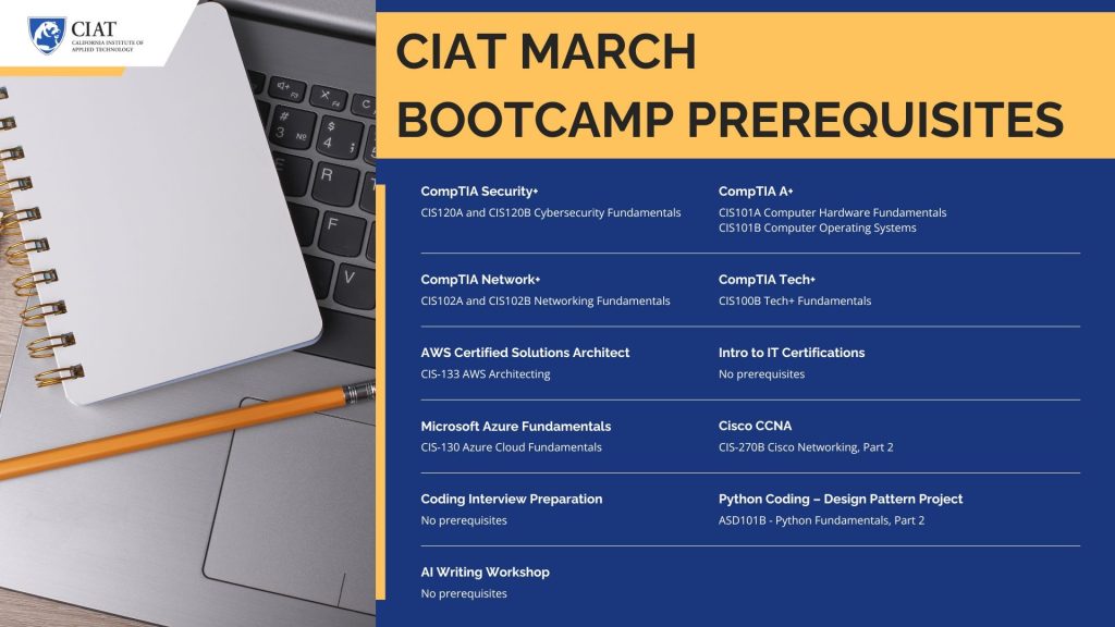 Our evening bootcamps are short-format (4 days, 4 hours/day) and designed for CIAT students who’ve completed IT courses — they focus on exam objectives not covered in class.